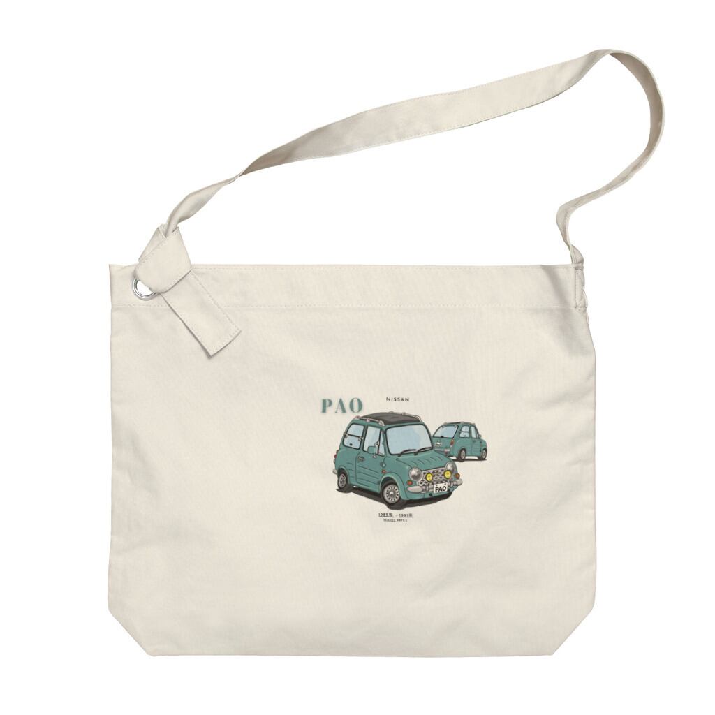 ナチュラルで可愛らしい日産パオ ビックショルダーバックをご紹介します。綿100%の素材で作られたこのバッグは、高さ40cm×幅50cm×底マチ10cmと大容量なので、たくさんの荷物を入れることができます。持ち手の幅が4cm、長さが120cmであり、肩に掛けることもできます。